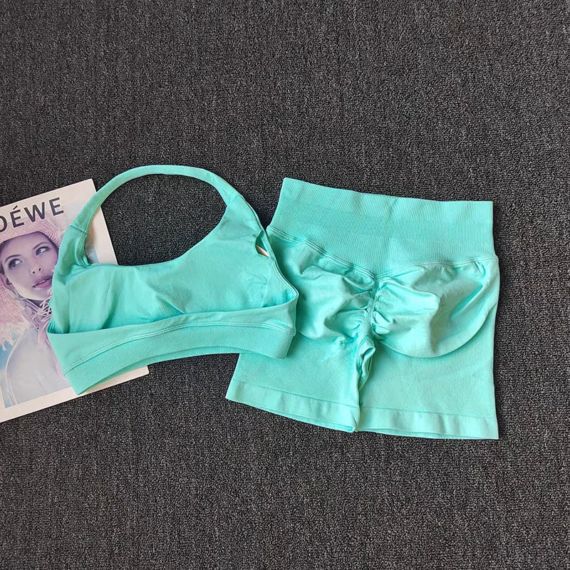2 Pieces Yoga Suit for Women Seamless Fitness Gym Clothes Halter Sports Bra Matching Impact Shorts Workout Sets Gym Set Outfit
